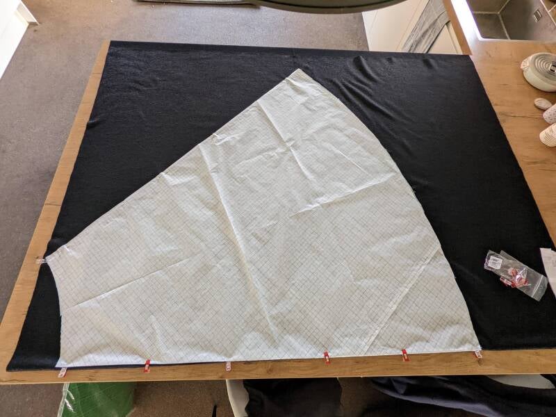 Ik heb gekozen voor een stof die niet rafelt, maar persoonlijk houd ik van een nette afwerking, dus ik heb beide voorpanden en het bovenste stuk alvast voorzien van een zoom. De onderkant zoom ik later.